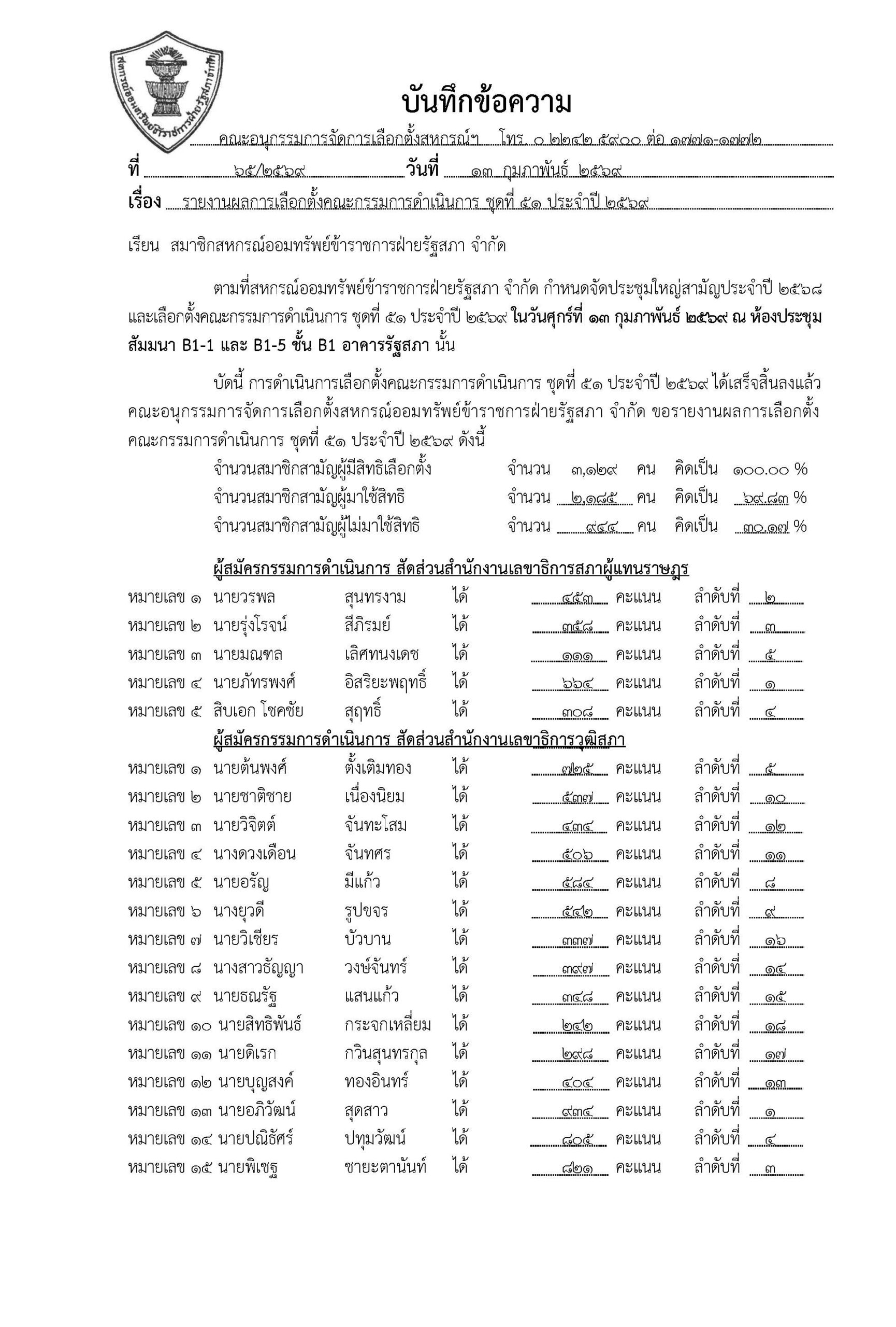 รายงานผลการเลือกตั้งคณะกรรมการดำเนินการ ชุดที่ ๕๑ ประจำปี ๒๕๖๙