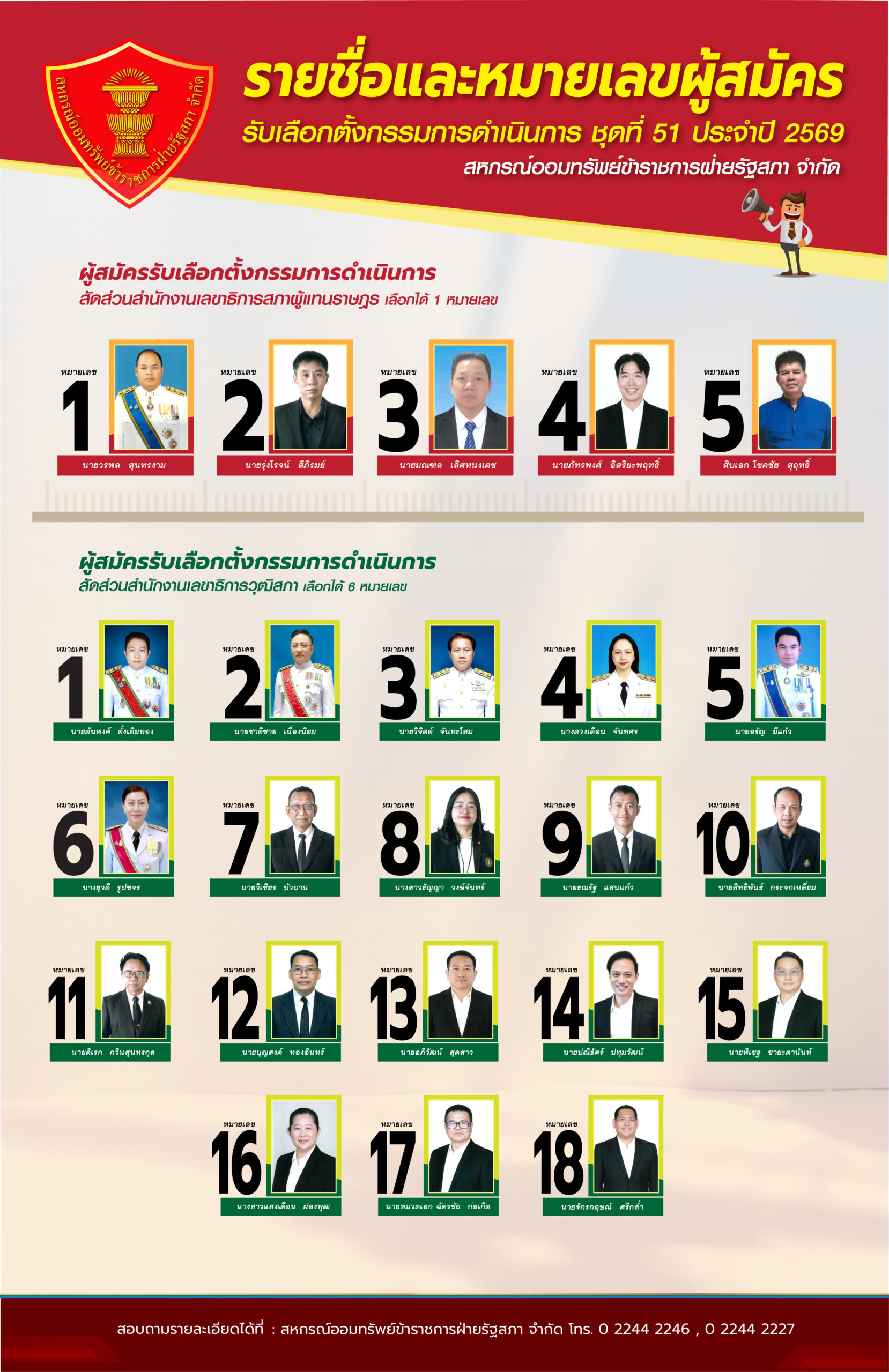 รายชื่อและหมายเลขผู้สมัครรับเลือกตั้งคณะกรรมการดำเนินการ ชุดที่ 51 ประจำปี 2569